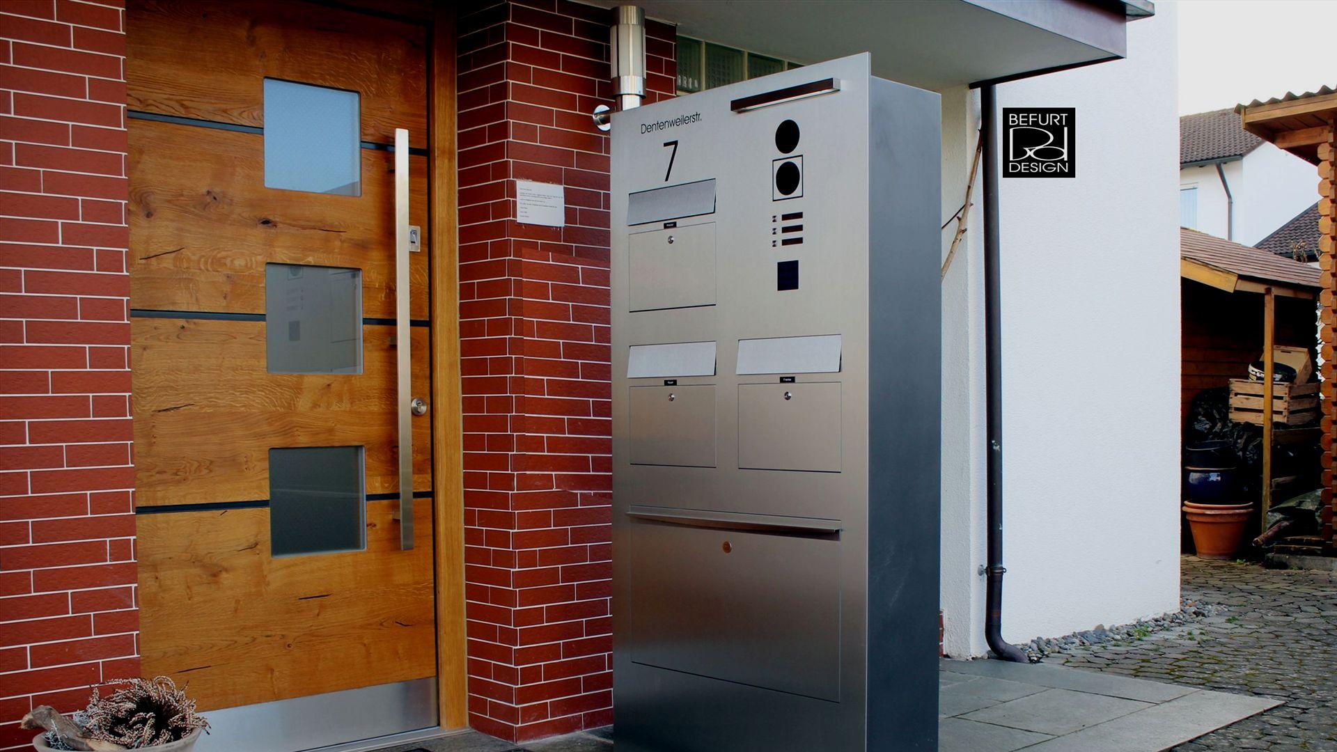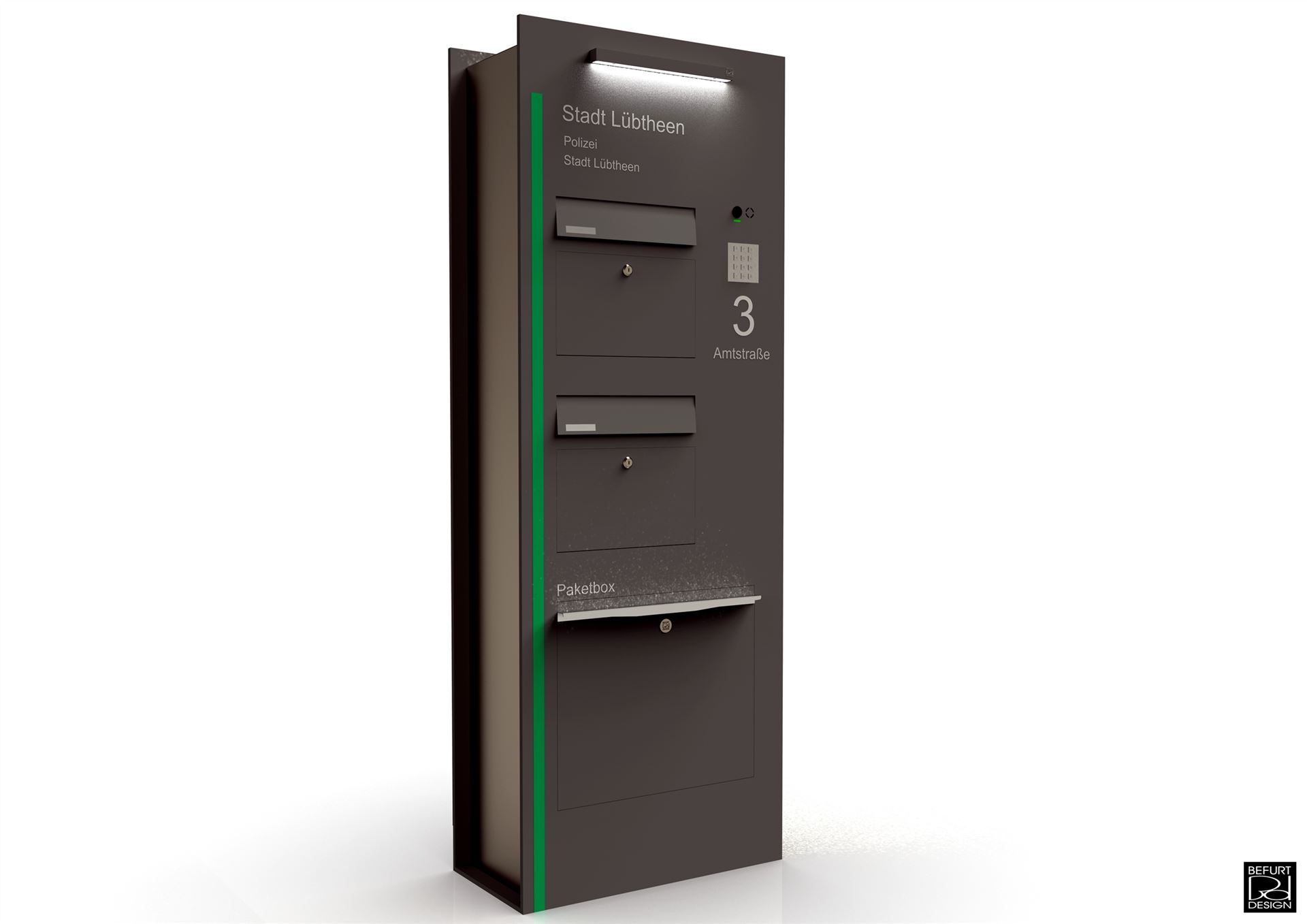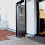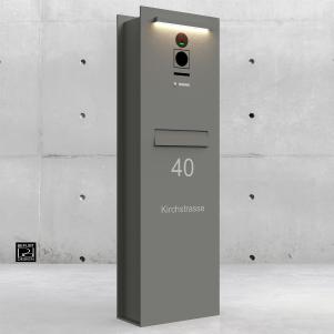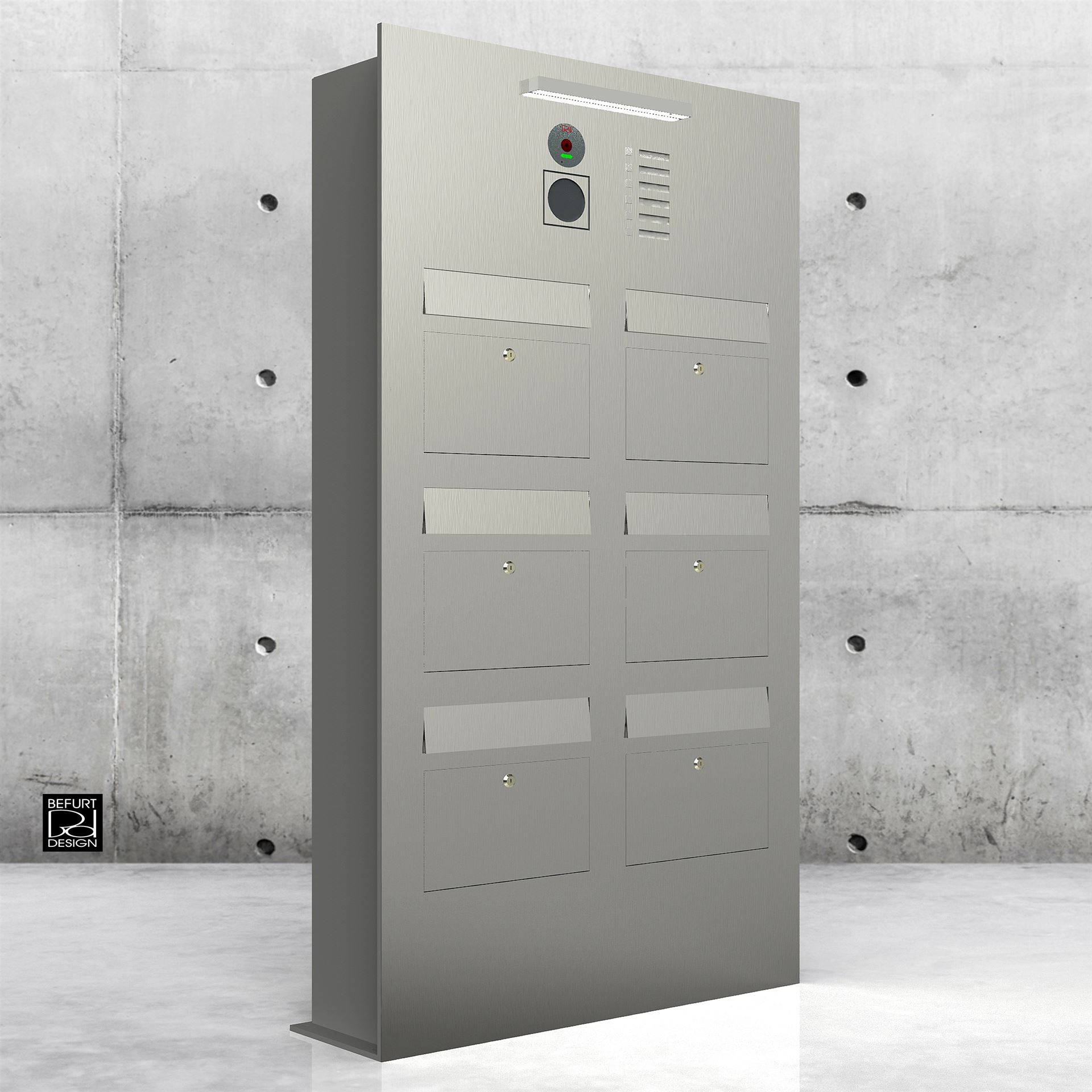 | standbriefkasten " ACERO stand10 c-talk" aus edelstahl und aluminium mit spezialleuchte. postentnahme vorne. 10 klingelknöpfe mit graviertem namensschild, 10 touchscreen monitore 7", kamera und sprechmodul. maße: h=1850mm b=1350mm t=270mm. | freistehender briefkasten "ACERO stand c-talk" aus edelstahl und aluminium komplett lackiert DB 703 eisenglimmer. inkl. spezialleuchte, sprechfeld, klingelknopf und graviertem namensschild und videosprechanlage mit 7" touchscreen monitor. postentnahme rückseitig. maße: ca. h=1700mm b=500mm t=270mm | standbriefkasten "ACERO c-talk" aus edelstahl und aluminium. videosprechanlage inkl. 1 touchscreen monitor, klingelknopf mit graviertem namensschild, paketfach mit drehknauf und spezialleuchte. maße: ca h=1610mm b=495mm t=240mm. OPTION: paketbox elektrisch mit code-tastatur gegen aufpreis | standbriefkasten " ACERO stand6 c-talk" aus edelstahl und aluminium mit spezialleuchte. postentnahme vorne. 6 klingelknöpfe mit graviertem namensschild, 6 touchscreen monitore 7", kamera und sprechmodul. maße: h=1850mm b=920mm t=270mm. | standbriefkasten-wegweiser "ACERO Stand c-talk wegweiser" frontplatte und rückseite aus edelstahl gebürstet, sprechfeld, edelstahlleuchte und 3 klingelknöpfe mit gravierte namensschilder. korpus aus aluminium lackiert DB 703 eisenglimmer. frontentnahme und revisionsöffnung für elektrik auf rückseite. gegensprechanlage bauseits. maße ca. h=1990mm x b=870mm x t=270mm |