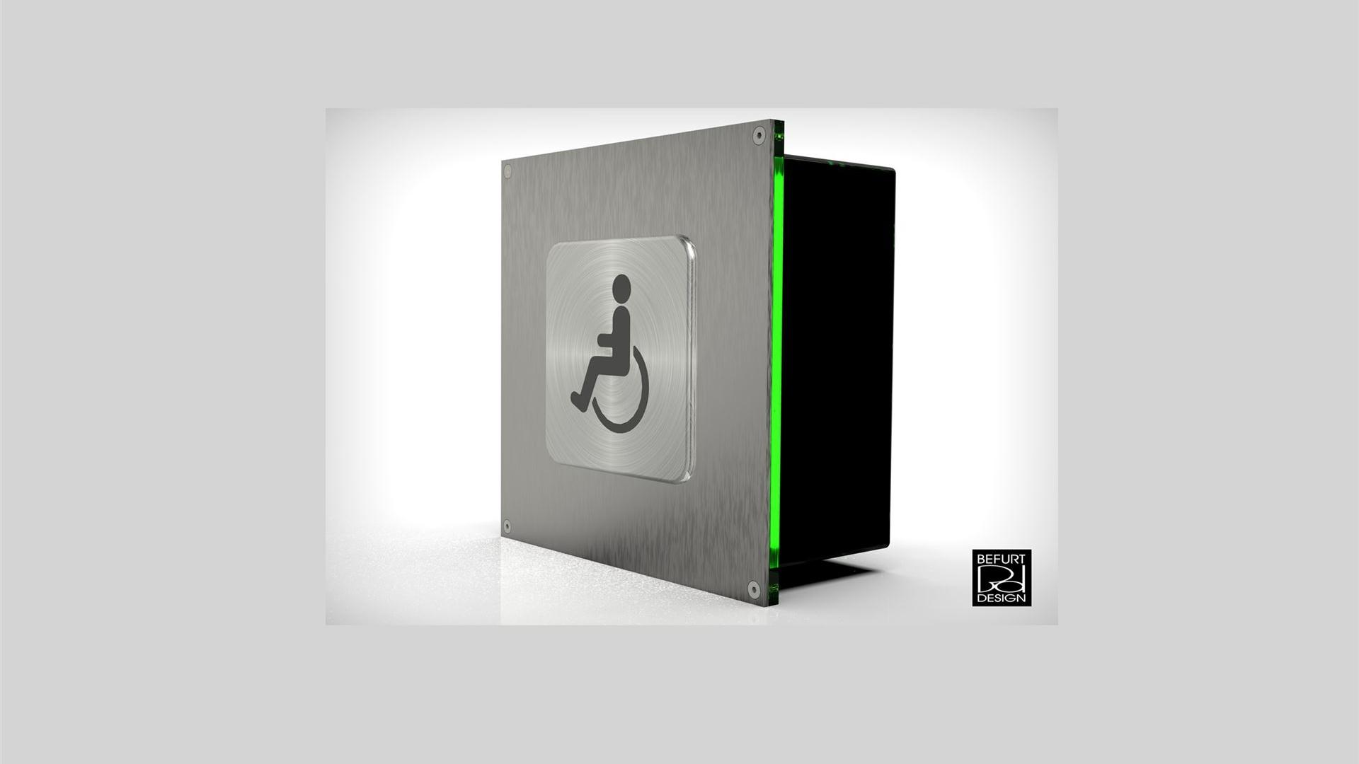 das unterputzgehäuse ist mit dem 3D drucker hergestellt in klargrün. die 4mm kante wird von innen beleuchtet um in der dunkelheit den taster hervorzuheben.