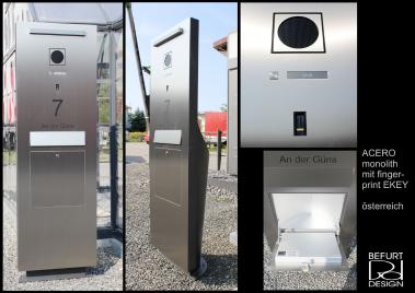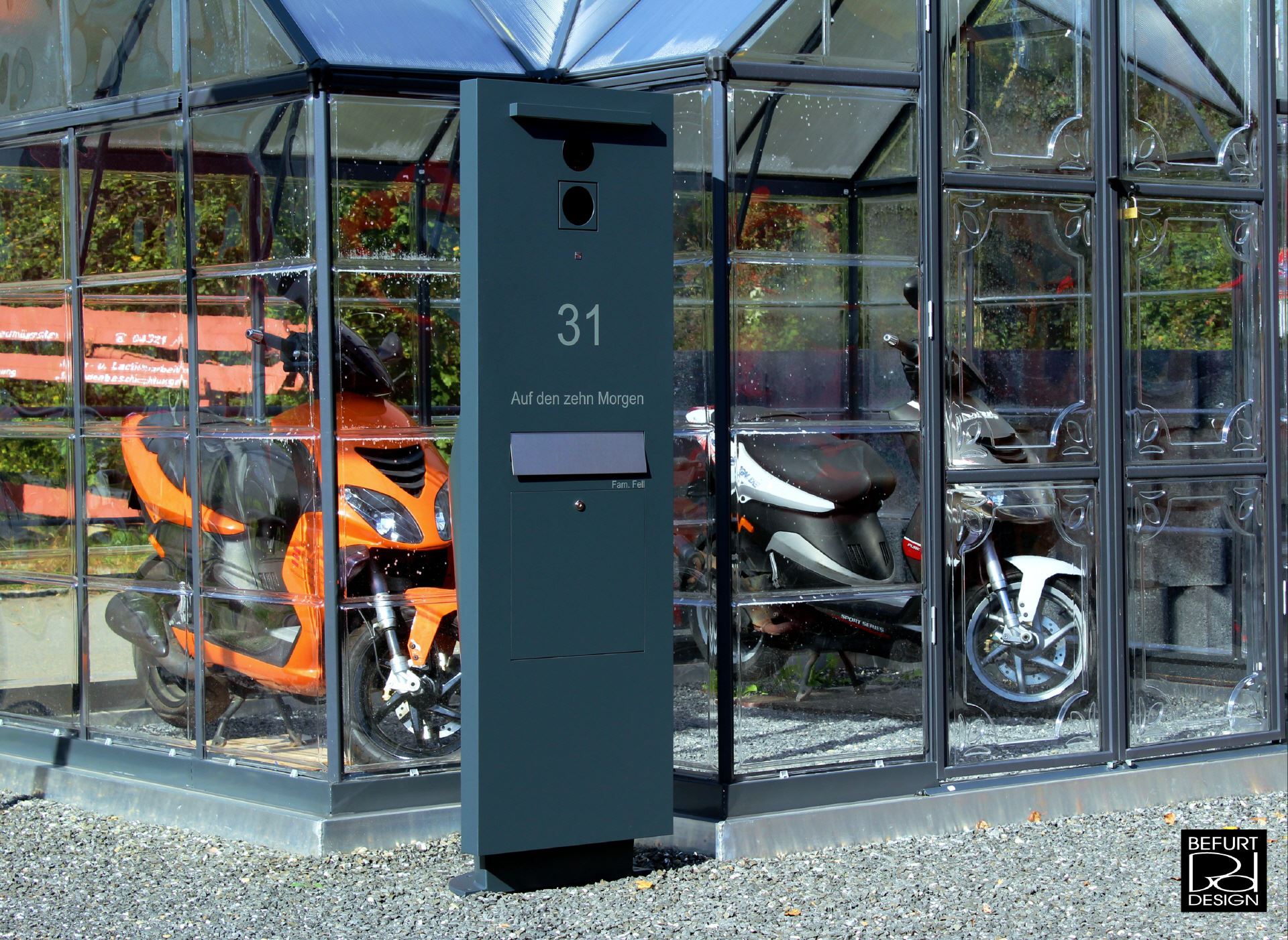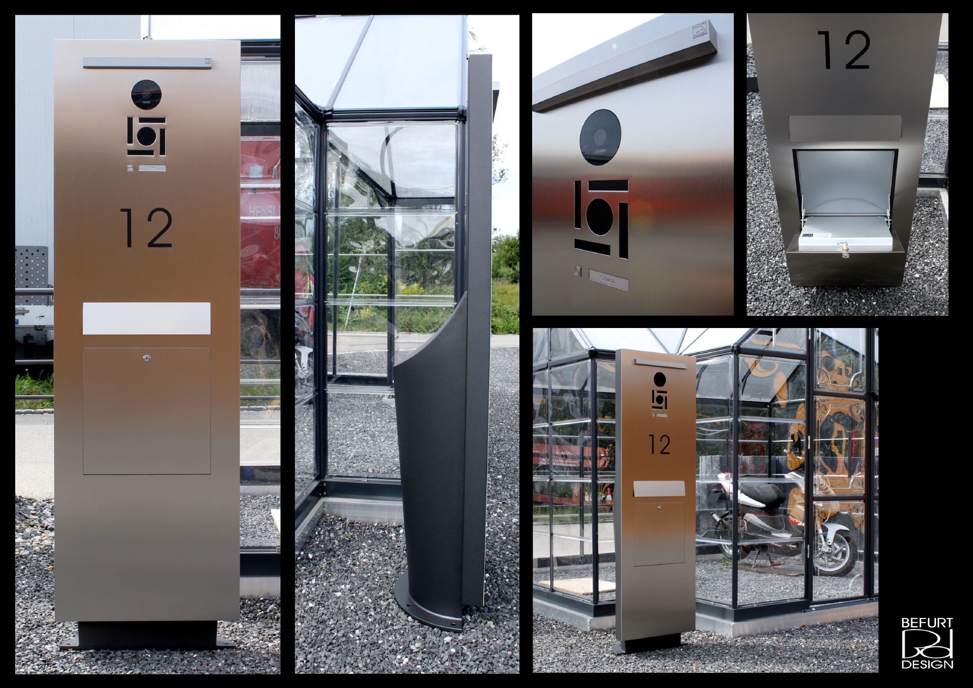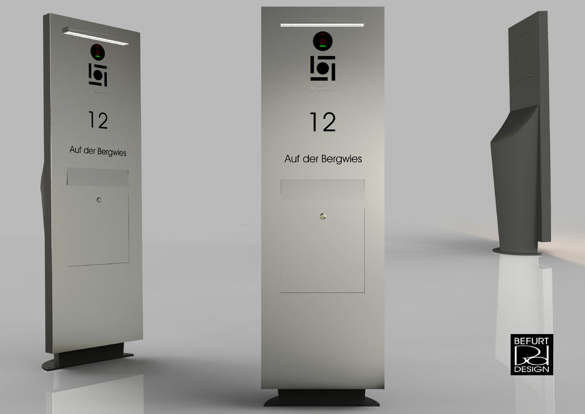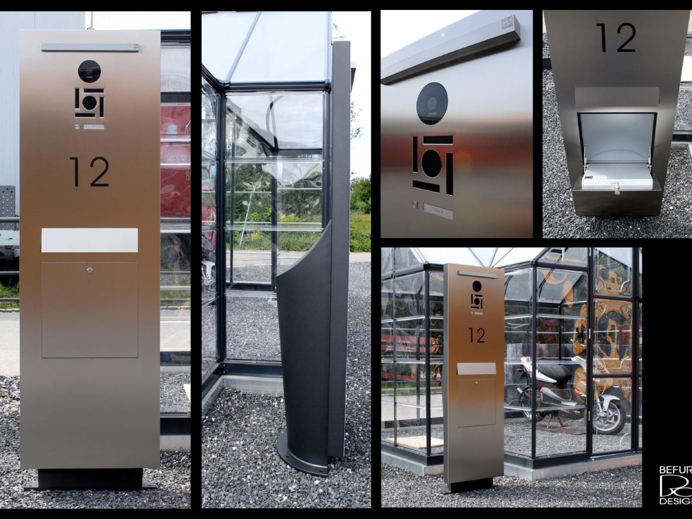 ein aussergewöhnlicher standbriefkasten aus edelstahl und aluminium.
