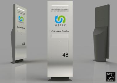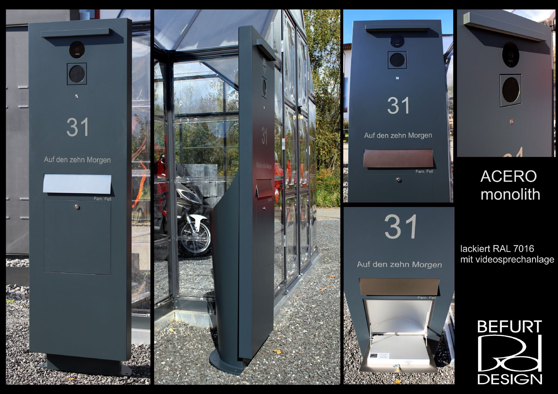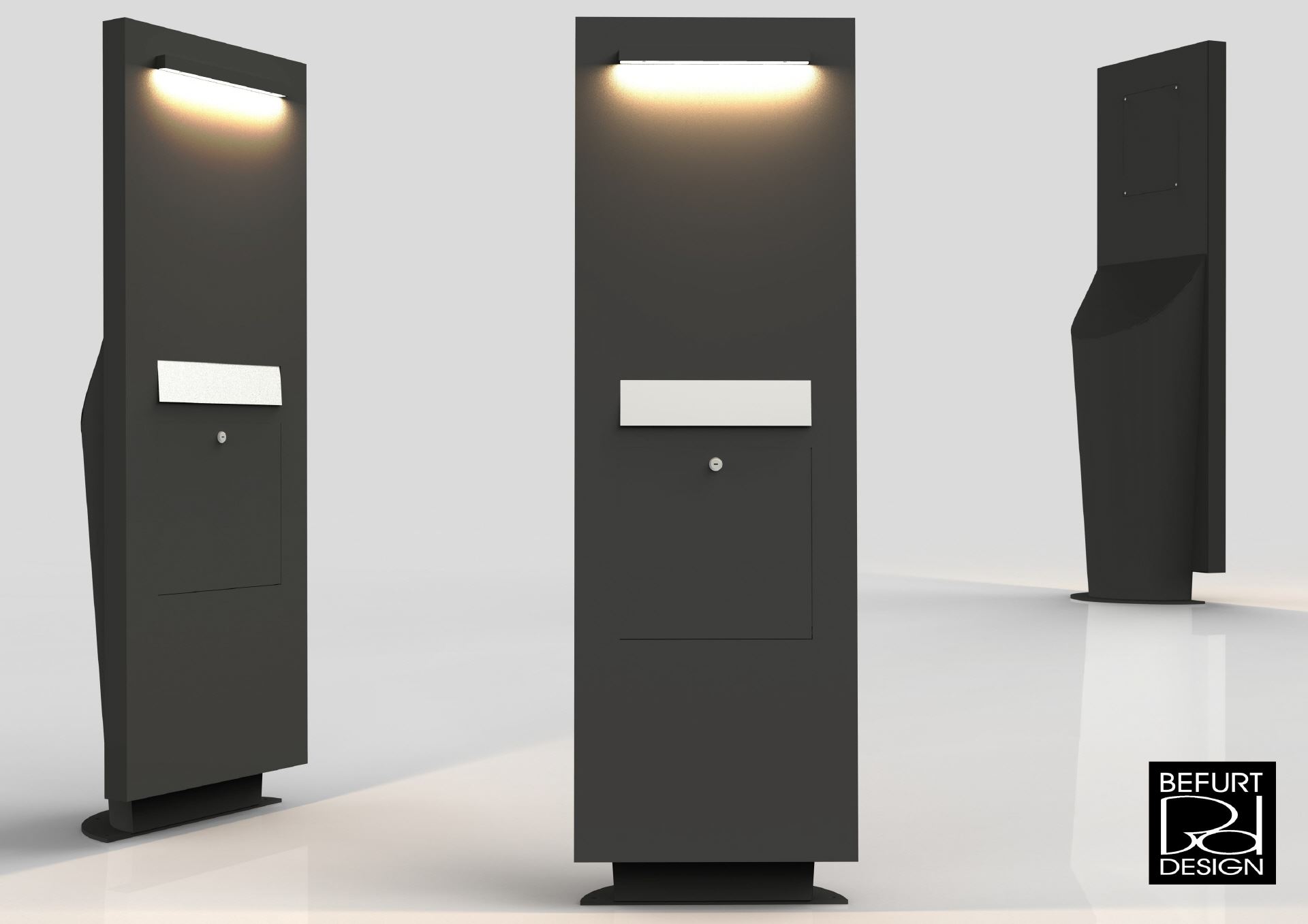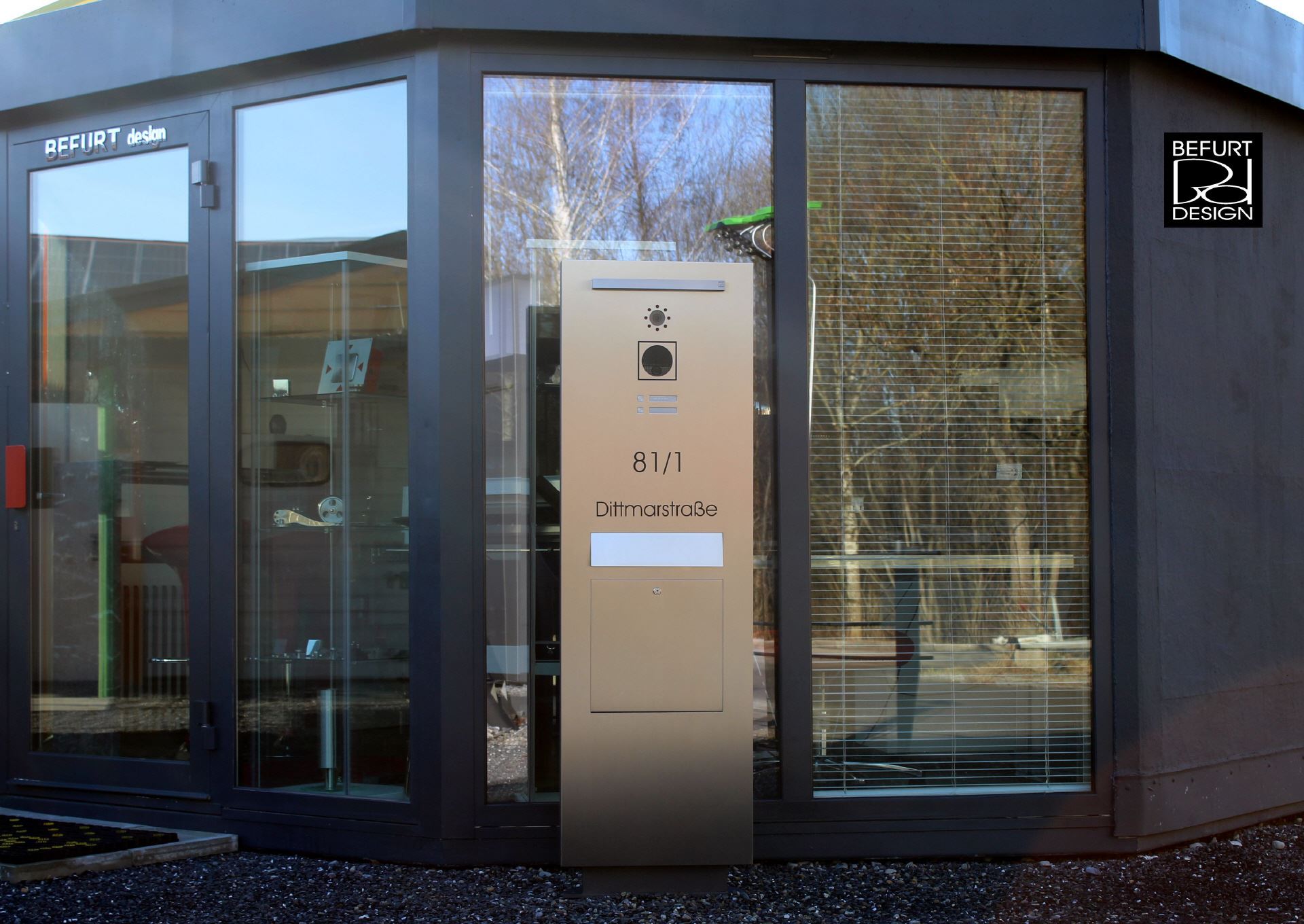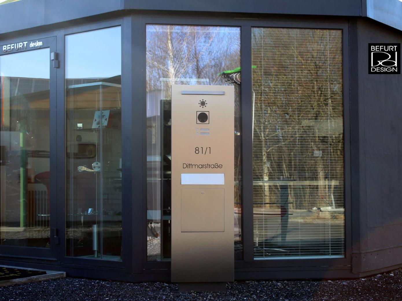 ein aussergewöhnlicher standbriefkasten aus edelstahl und aluminium.