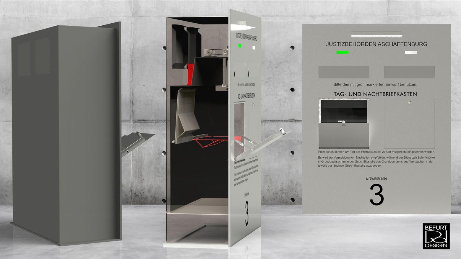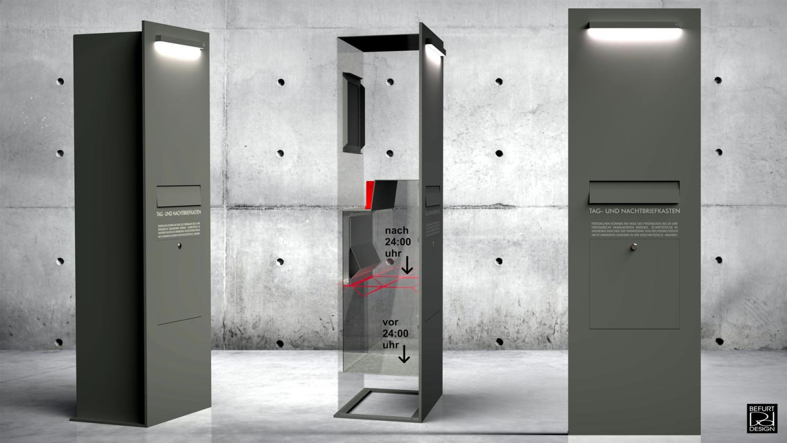 uhr fällt die nachtklappe und die eingeworfene post wird im oberen fach gelagert. die